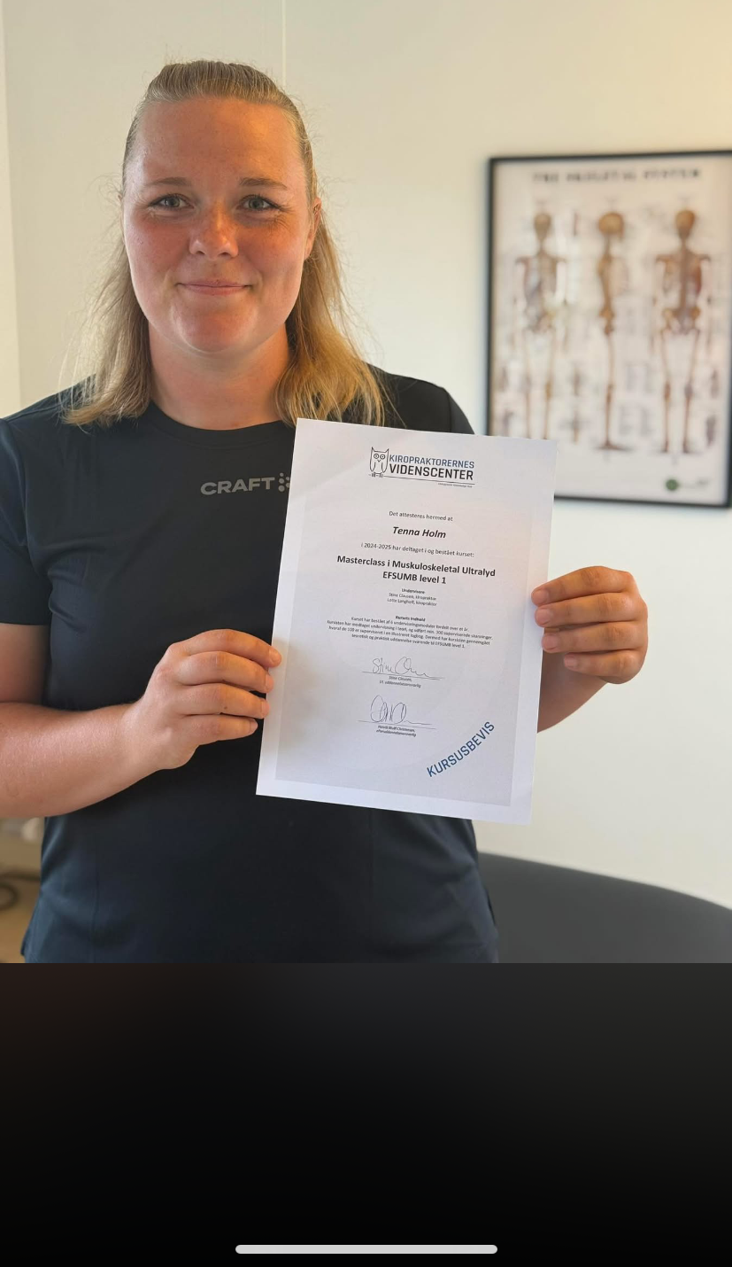Vi er stolte af at annoncere, at Tenna i foråret 2025 har bestået sin efteruddannelse i muskuloskeletal ultralydsscanning.